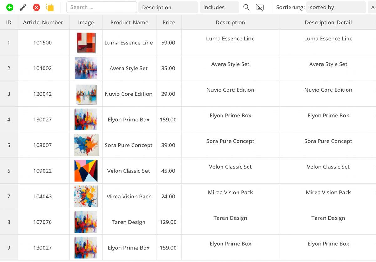 La base de datos se puede gestionar de forma especialmente sencilla en formato de tabla. Crear contenido como artículos de tienda o entradas de blog es tan fácil como publicar en redes sociales.