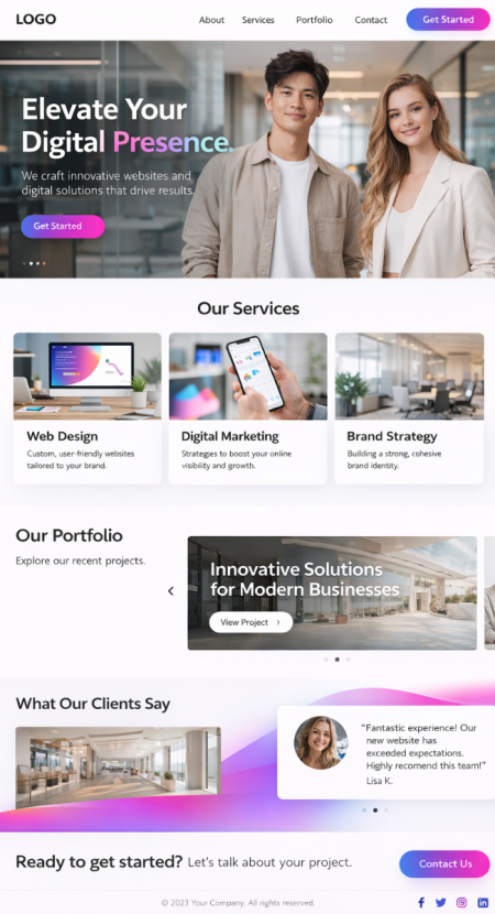 Sitio web, tienda en línea, blog – con funciones de IA y un diseño fuerte, creado a través de CMS o aplicación. Dominio, correo electrónico y alojamiento incluidos. Opcional con servicio de agencia.