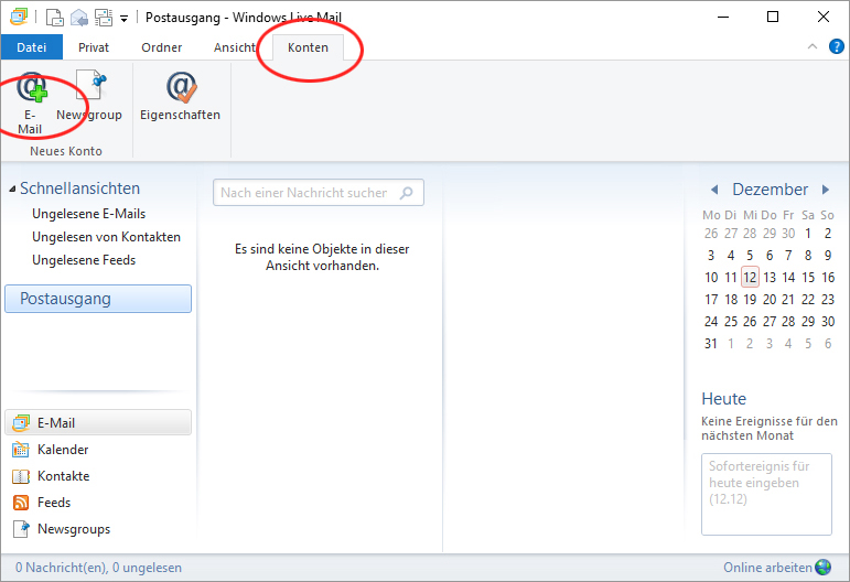Starten Sie Windows Live Mail und klicken Sie auf KontenEmail.
