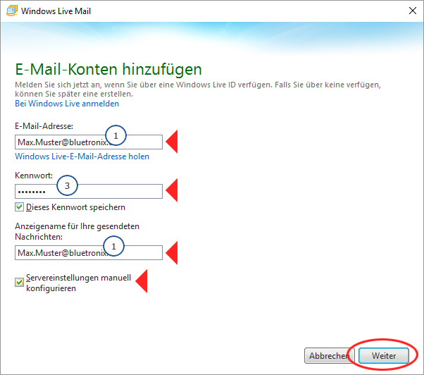 E-Mail Einrichtung Windows Live Mail