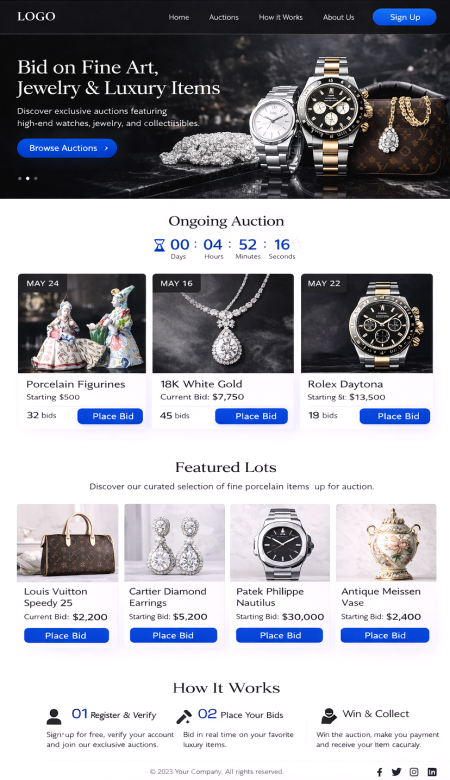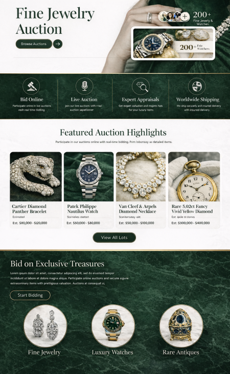 Las funciones están basadas en bases de datos y están diseñadas para que su inventario se mantenga, publique y amplíe rápidamente. De este modo, su presentación no solo se ve bien, sino que también es técnicamente sólida, un punto importante si desea agregar subastas en vivo, back-office y automatizaciones más adelante.
