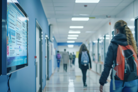 Los monitores muestran avisos, sustituciones, cambios de aula, noticias y citas. Los horarios, plantillas y aprobaciones aseguran un funcionamiento tranquilo, sin papeleo espontáneo.